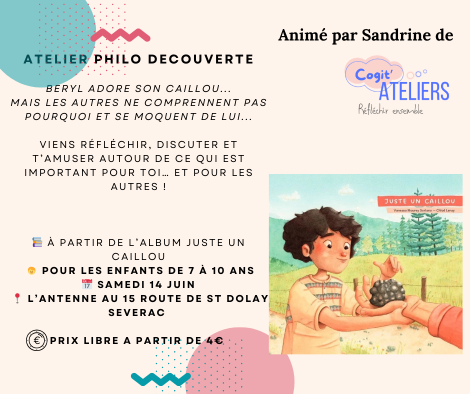 Un atelier philo pour enfants à Sévérac sur le site de l’Antenne, le samedi 14 juin. (l’affiche en PJ)