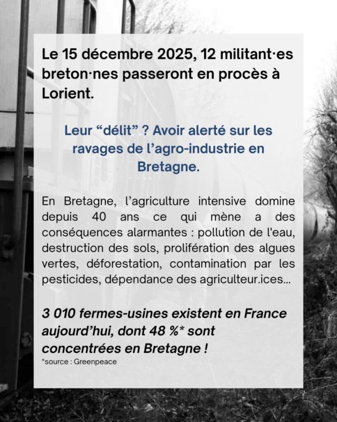 �� Participe à la caisse de solidarité : https://bretagne-contre-les-fermes-usines.fr/collecte-de-fonds-pour-gagner-en-justice-face-a-letat-et-ses-complices/