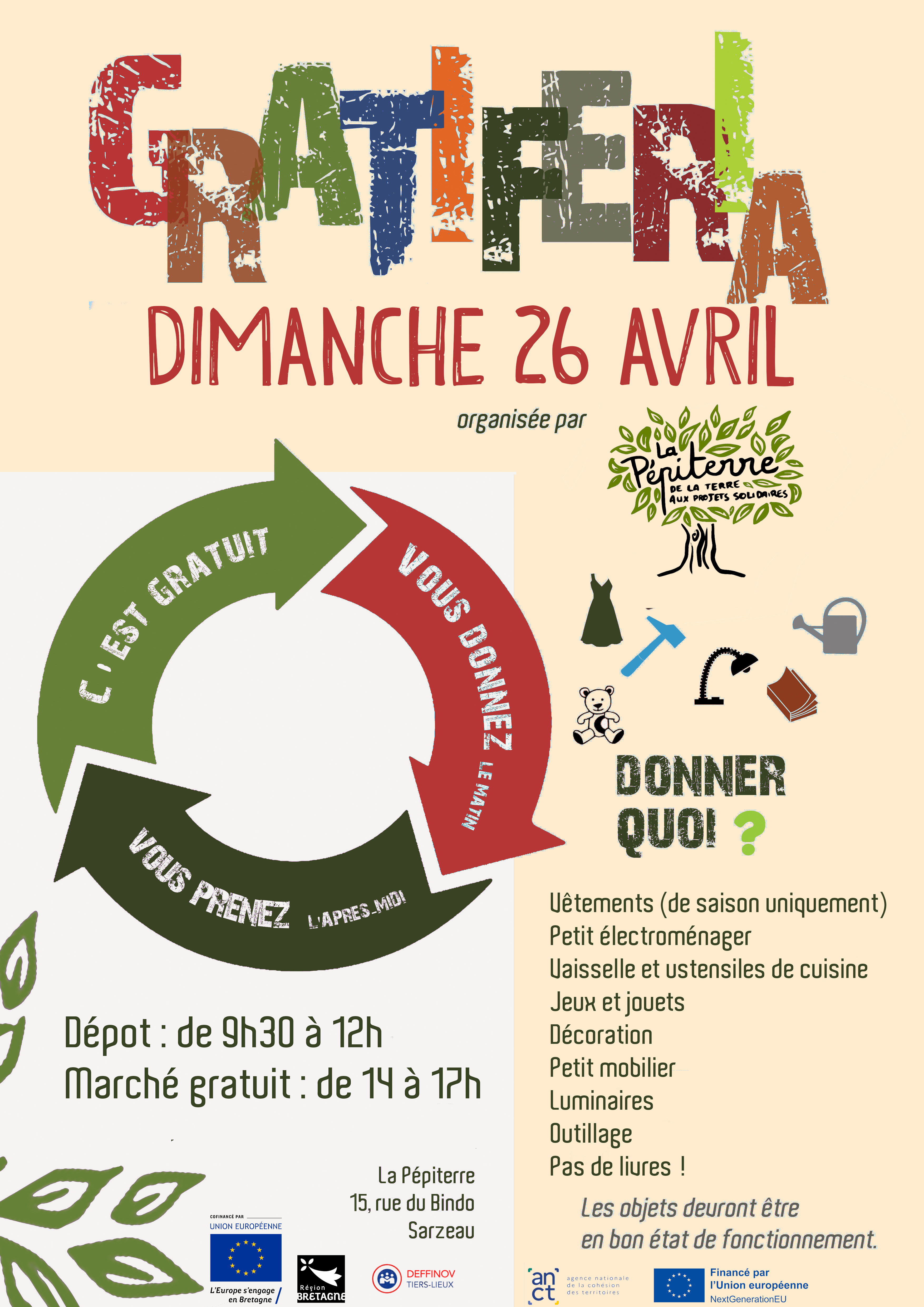 GRATIFERIA À LA PÉPITERRE- Dimanche 26 avril de 9h30 à 17h