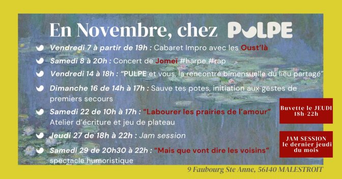 Accueil > Les nouvelles du coin > [Pulpe]- Programme de Novembre