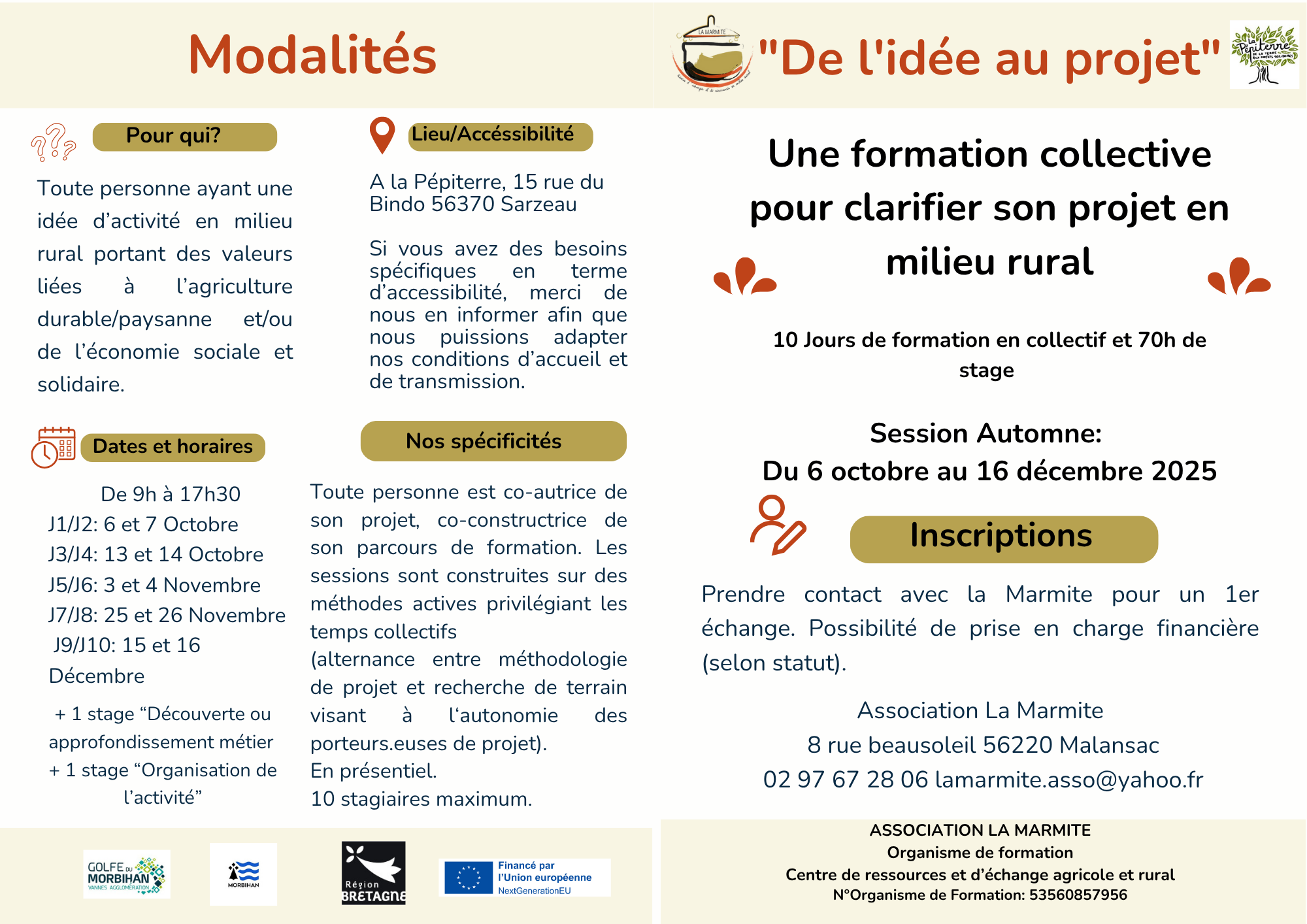 Si tu souhaites avoir des infos et/ou t’inscrire à la formation de l’idée au projet à l’automne 2025,