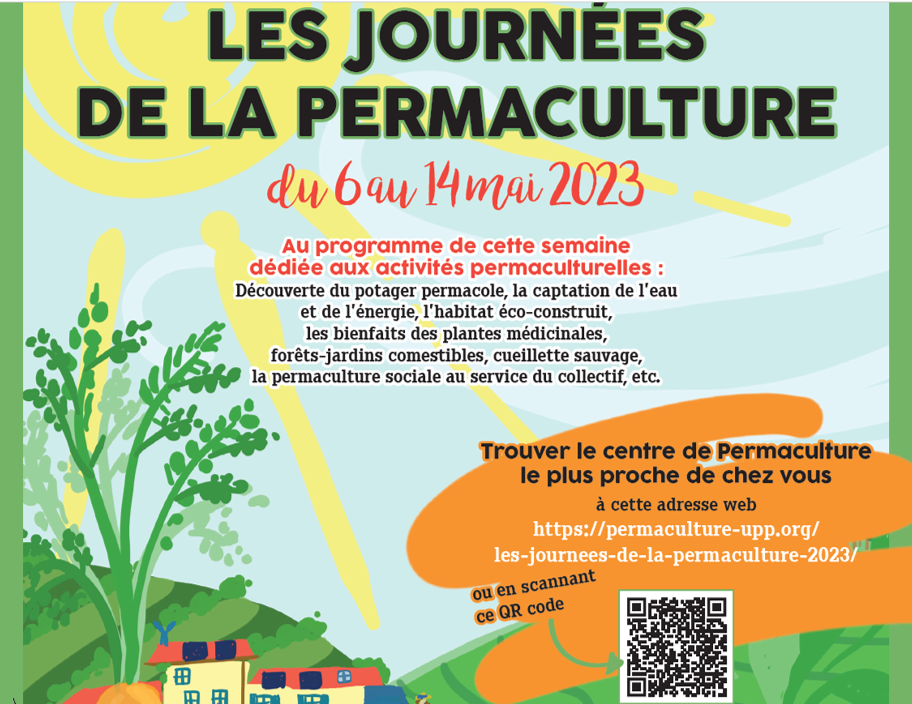 J’espère vous voir nombreux lors de cette journée d’initiation à la permaculture et vous invite à visiter le site web pour en savoir plus sur les Journées de la Permaculture 2023 : https://permaculture-upp.org/les-journees-de-la-permaculture-2023/?fbclid=IwAR1GtXvCCzYUvhTGKUi3dWVYgPmX_IcKgv3fvdiPT2C3OaJgy_8h8UvdSpQ