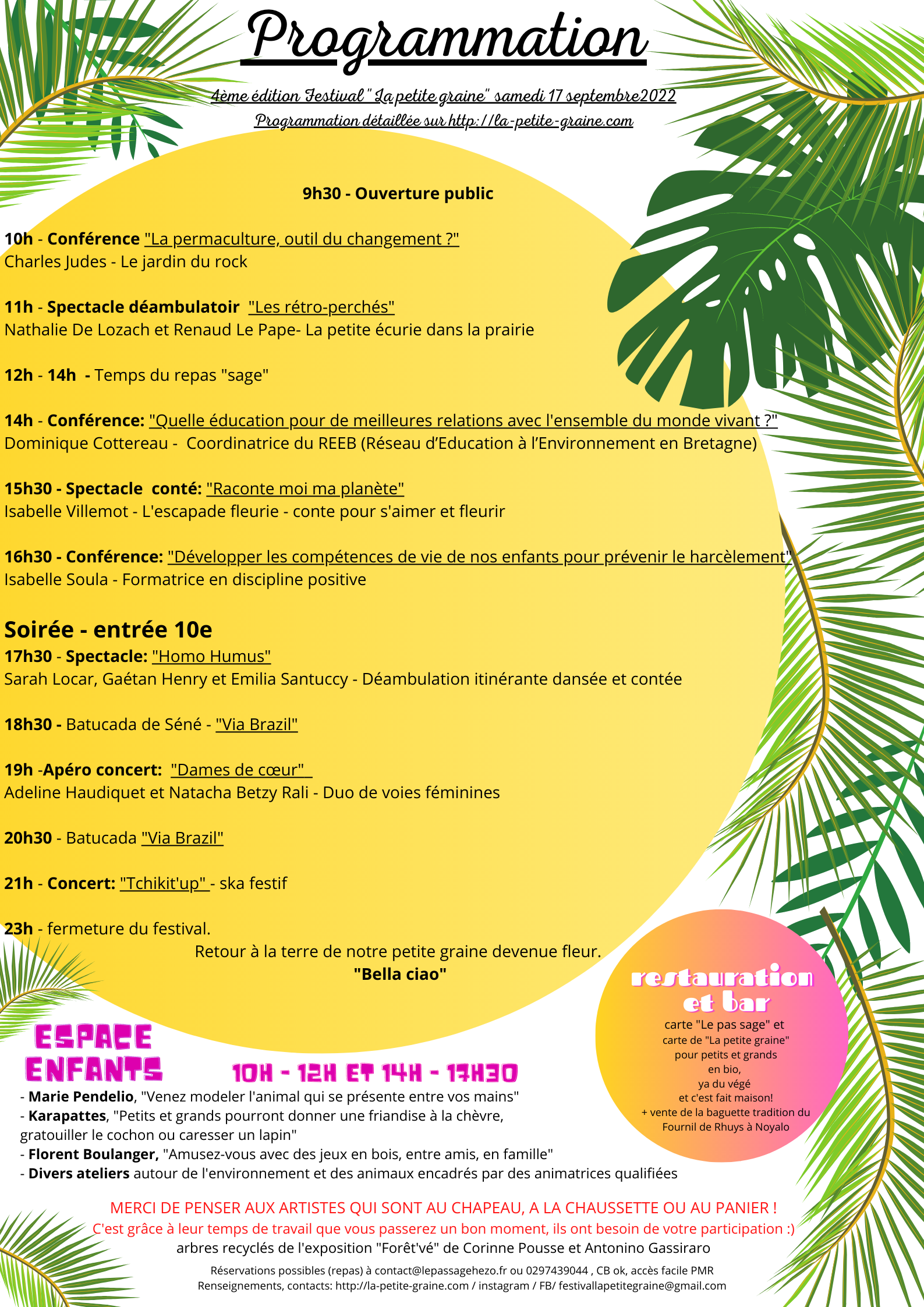 4e et dernière édition du festival « La petite graine » qui s’articule autour de la thématique « du respect du vivant, de la nature et des animaux ».