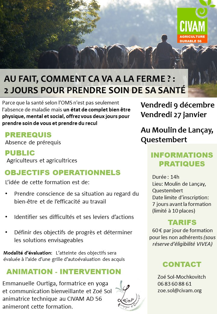 [FORMATION CIVAM] Bien-être au travail : au fait, comment ça va sur ta ferme ? 2 jours pour prendre soin de sa santé