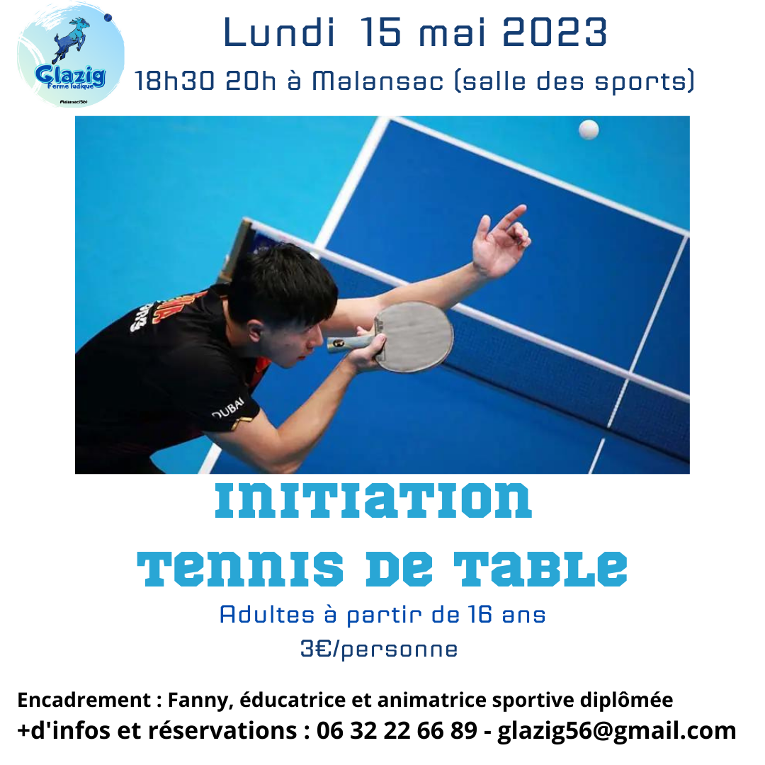 Lundi 15 mai 18h30/20h Initiation tennis de table. Adultes à partir de 16 ans.Salle des sports