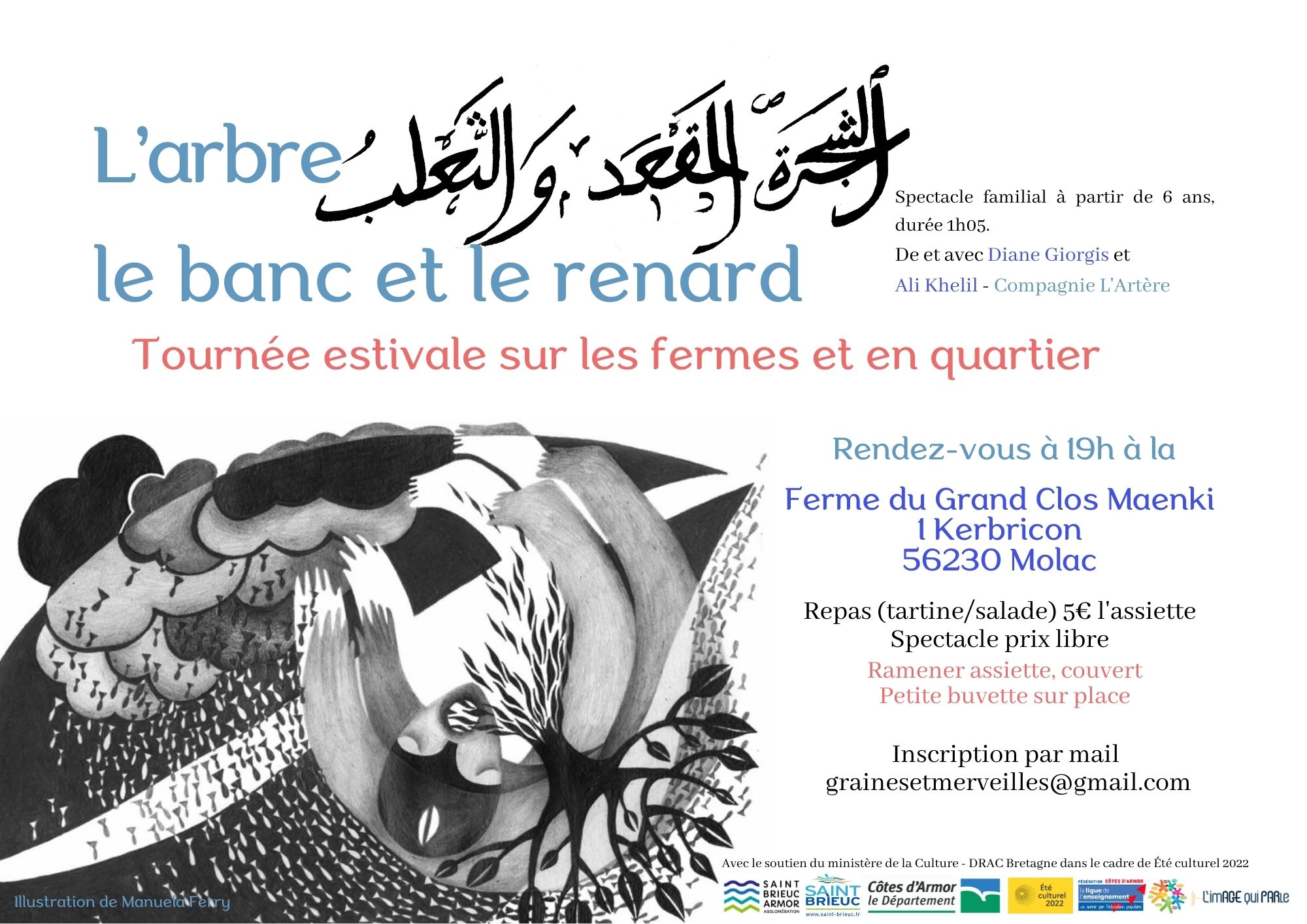 Soirée théâtre, vendredi 15 juillet, 19h - "L’arbre, le banc et le renard", spectacle familial à partir de 6ans, avec repas possible à réserver (fly en pièce jointe)