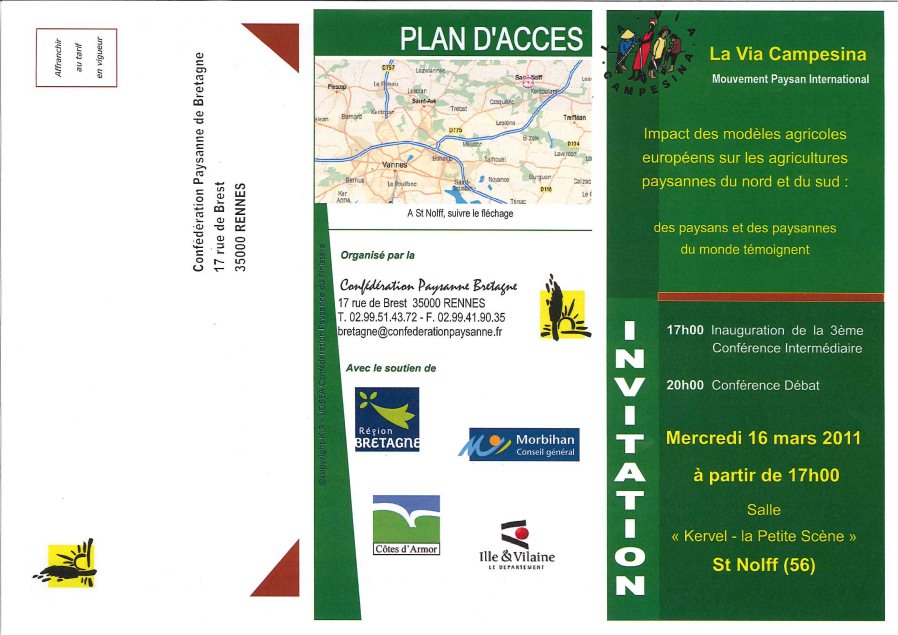 Dès 17h avec l’inauguration de la 3ème Conférence intermédiaire de la VIA CAMPESINA (plaquette du programme en pièce-jointe)