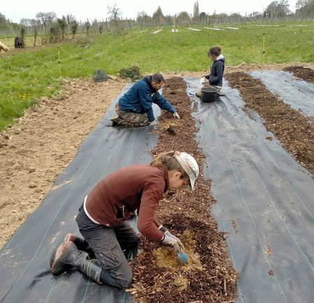 Juste après ma sortie de formation, nous avons créé une structure qui s’appelle ‘’le verger de mon voisin’’. On fêtera nos deux ans le premier mai qui vient. On a acheté cette maison avec des terres. On est parti de prairie, avec l’objectif de monter une ferme fruitière en agriculture biologique. On a déjà planté 3 200 pommiers, 600 poiriers et 2000 fraisiers. À terme, on aura 4 000 fraisiers, des myrtilles, des framboisiers, des cassissiers, des groseilliers, de la rhubarbe, et il y aura des petites surprises à venir dans les prochaines années.