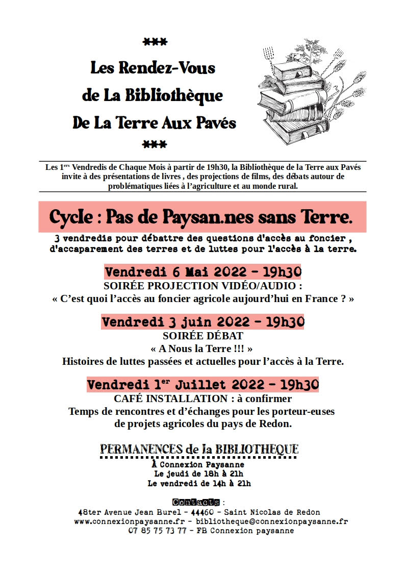 [Les Rendez-vous de la Bibliothèque de la Terre aux Pavés] Cycle "Pas de paysan-nes sans Terre"