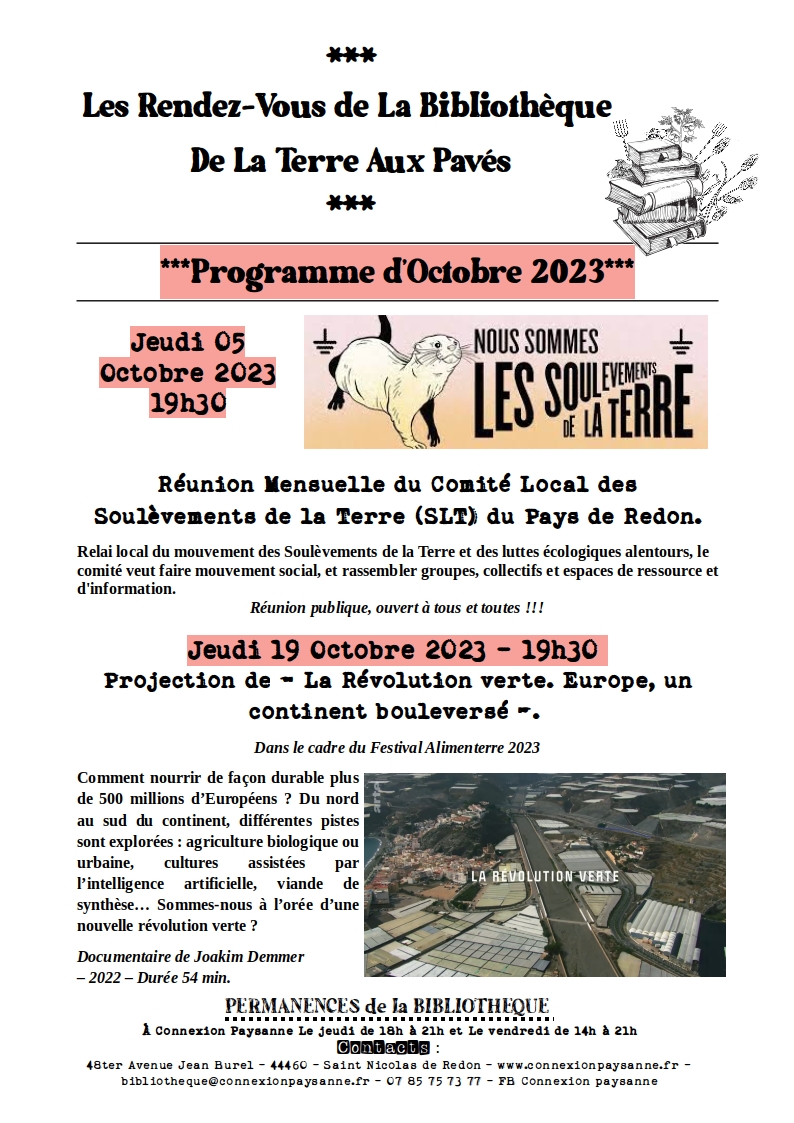 [les Rendez-Vous de la Bibliothèque de la Terre aux Pavés] Programme d’Octobre 2023