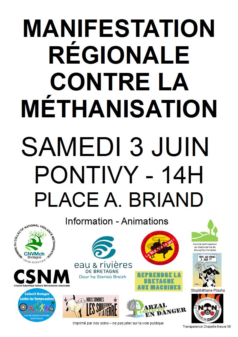 Manifestation Régionale contre la Méthanisation – samedi 3 juin à partir de 14h – place Aristide Briand (la Plaine) – PONTIVY