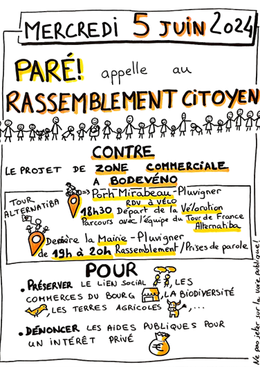 📣PARÉ ! appelle au rassemblement citoyen pour manifester ensemble notre opposition à la zone commerciale et notre volonté d’un autre modèle.