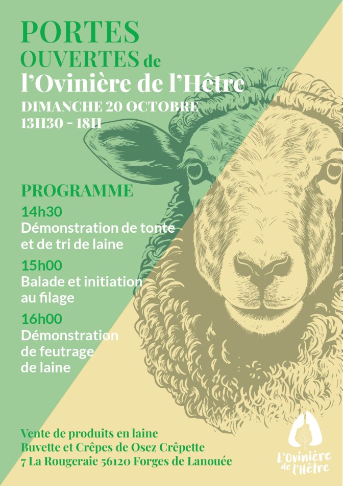 Installée depuis un an en élevage ovin viande et laine sur la commune des Forges de Lanouée, j’ai le plaisir de vous convier à la porte ouverte de ma ferme L’Ovinière de l’Hêtre le dimanche 20 octobre 2024.