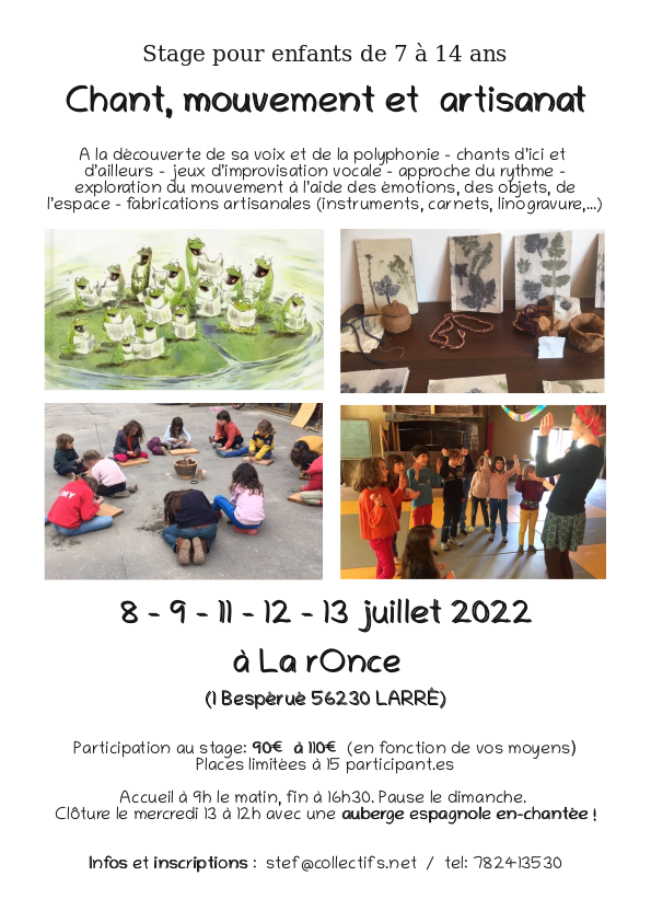 Accueil > Les nouvelles du coin > Stage de Chant, mouvements et artisanats pour enfants