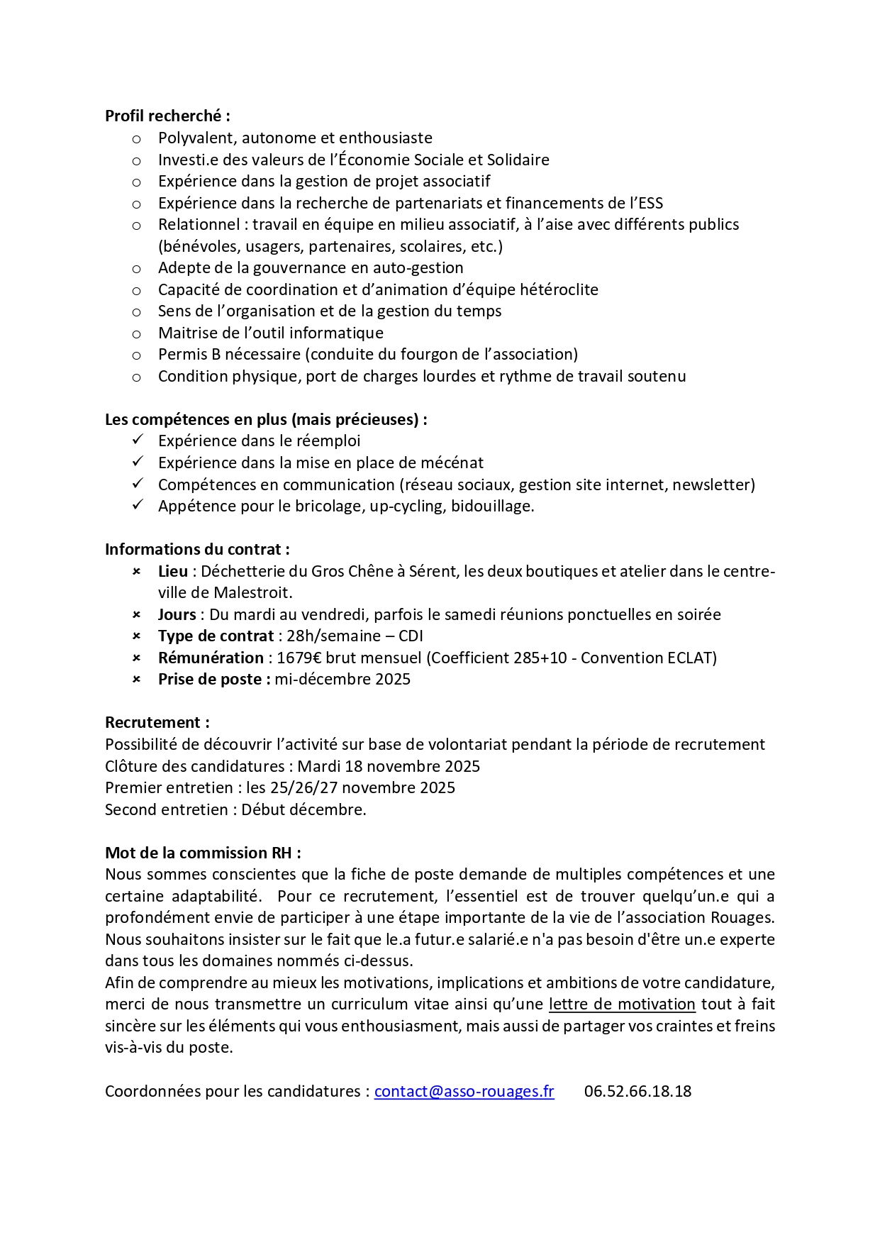 Accueil > Petites annonces > Coordinateur-rice associatif/valoriste en ressourcerie" CDI 28h/sem (56)