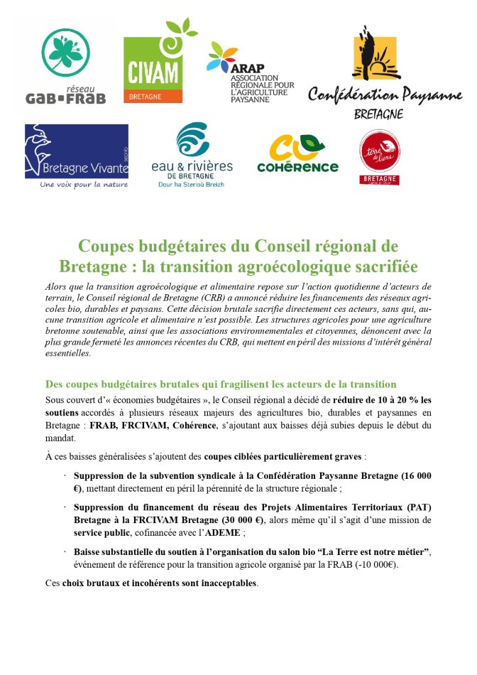 Accueil > Actualités > Coupes budgétaires du Conseil régional de Bretagne : la transition (…)