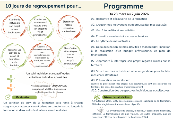 Vous trouverez ci-dessous, le programme du parcours d’accompagnement de l’idée au projet du printemps 26.