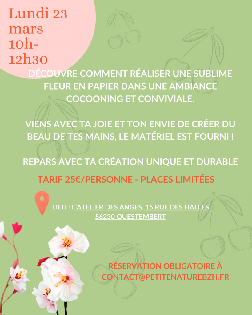 [Petite nature bzh] - Atelier création de fleurs de cerisiers en papier, lundi 23 mars