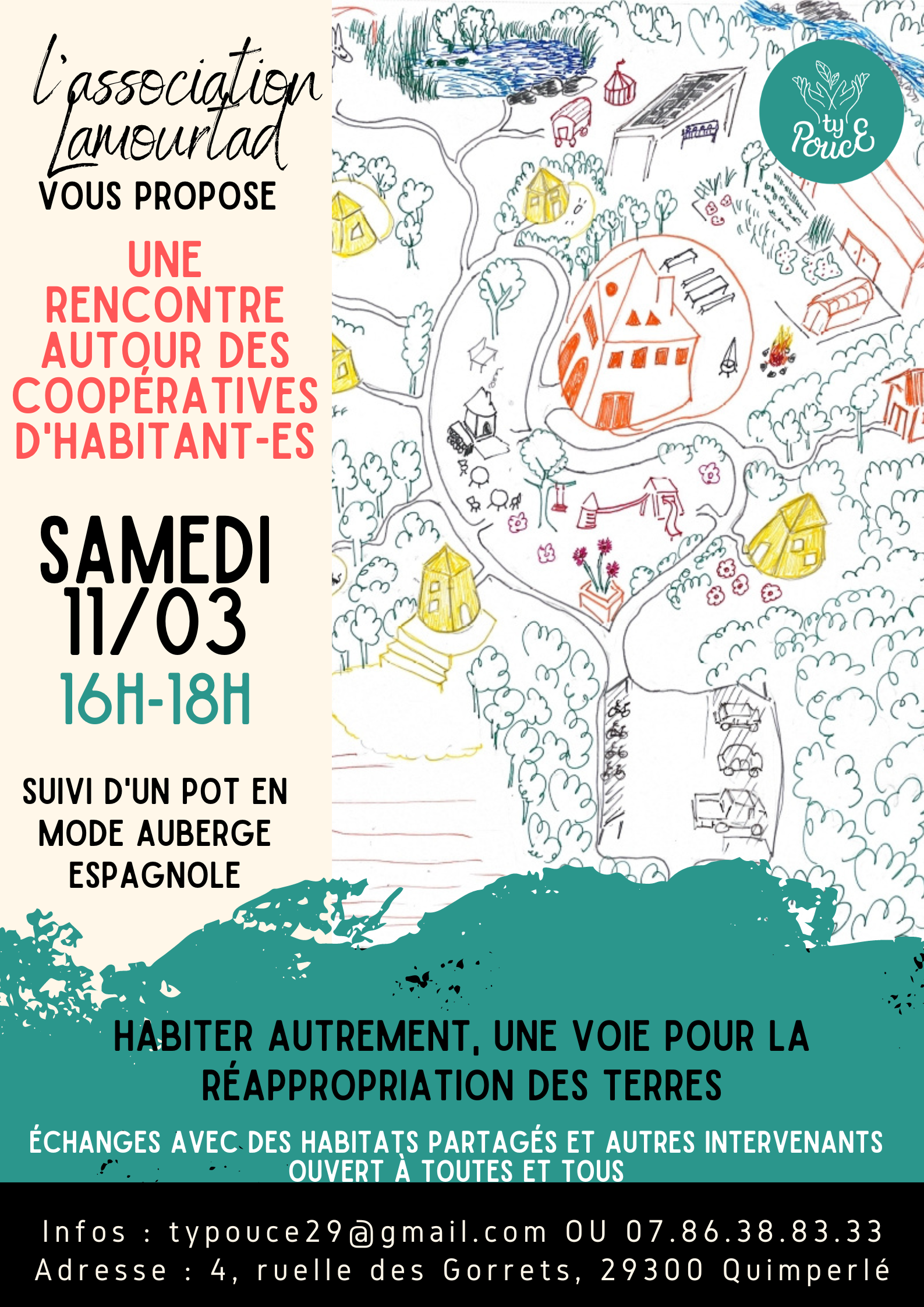 Nous sommes un groupe réfléchissant sur notre future manière d’habiter, et pour nourrir nos questionnements nous organisons une rencontre autour des coopératives d’habitant, habiter autrement, une voie pour la réappropriation des terres ?