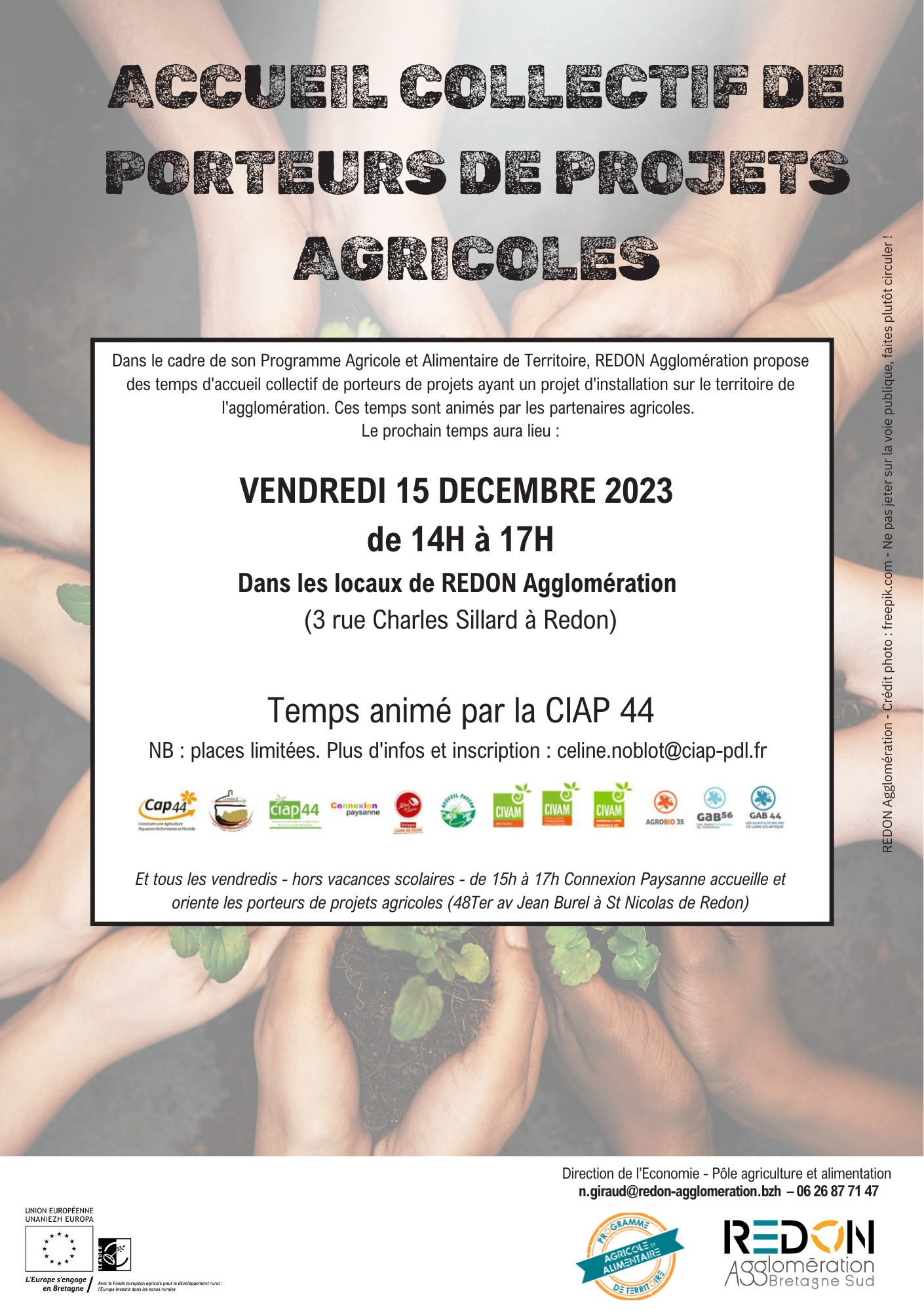 un nouveau temps d’accueil collectif des porteurs de projets agricoles souhaitant s’installer sur le territoire de l’agglomération aura lieu vendredi 15 décembre à 14h dans les locaux de l’agglomération
