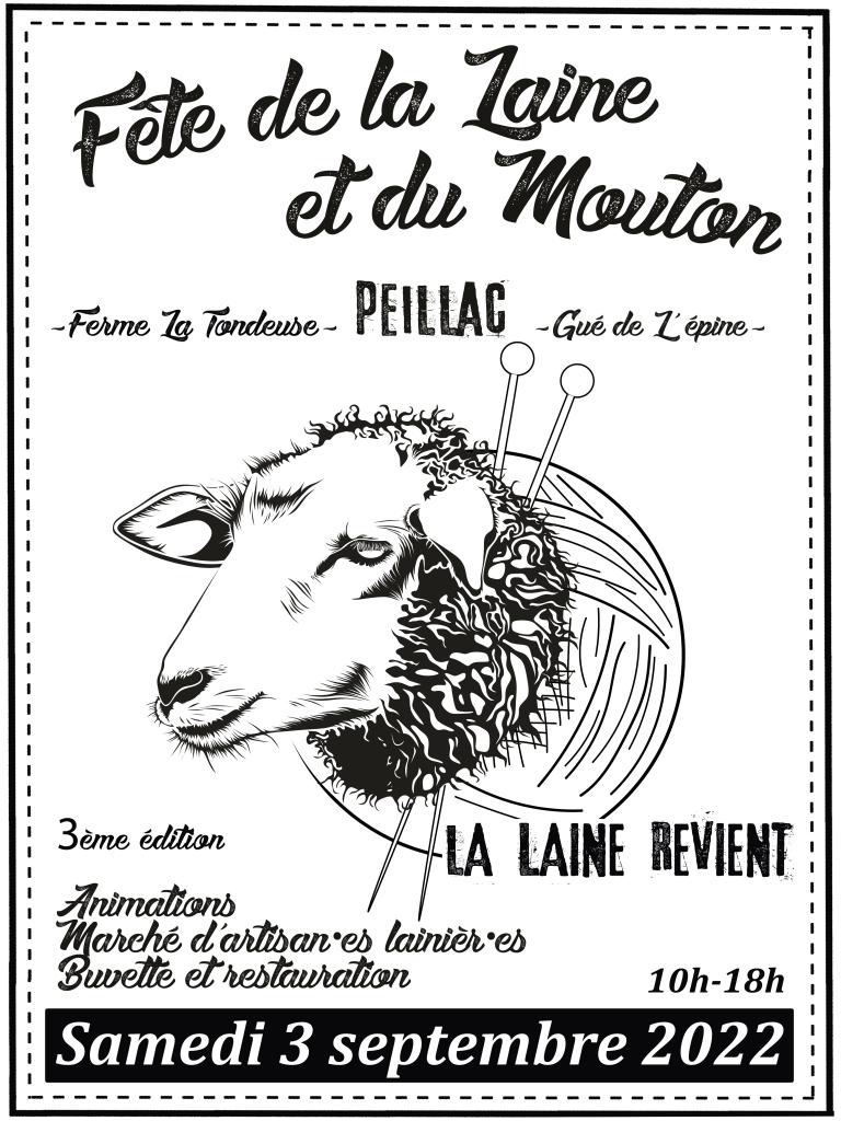 La 3ème édition de la Fête de la Laine et du Mouton de Peillac se déroulera le samedi 3 septembre 2022, de 10h à 18h, au Gué de l’épine.