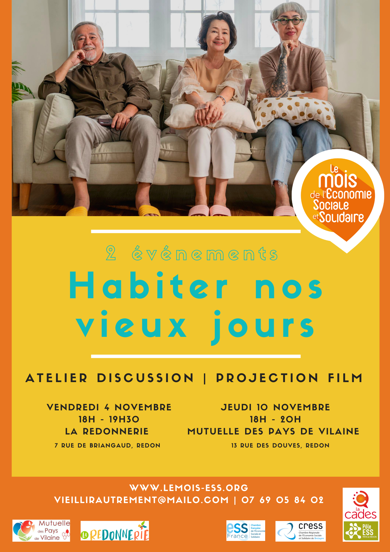 -Une projection du film documentaire Habiter ses vieux jours, le jeudi 10 novembre de 18h à 20h à la Mutuelle des Pays de Vilaine : https://lemois-ess.org/projection-f...