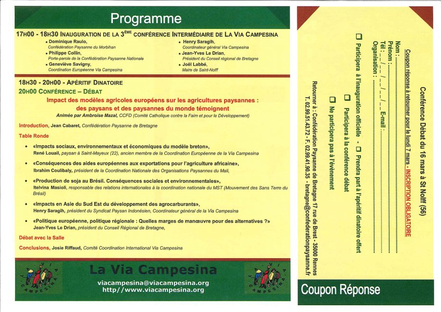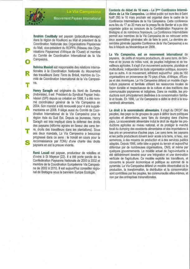 Dès 17h avec l’inauguration de la 3ème Conférence intermédiaire de la VIA CAMPESINA (plaquette du programme en pièce-jointe)