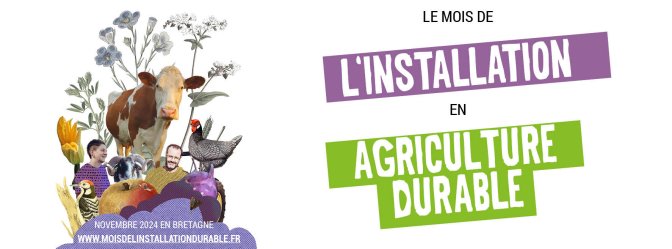 → Le programme des 26 évènements du mois de l’installation en agriculture durable est disponible sur le site du Mois de l’installation durable Vous y trouverez également les dates des formations Transmission disponibles sur les 4 départements bretons