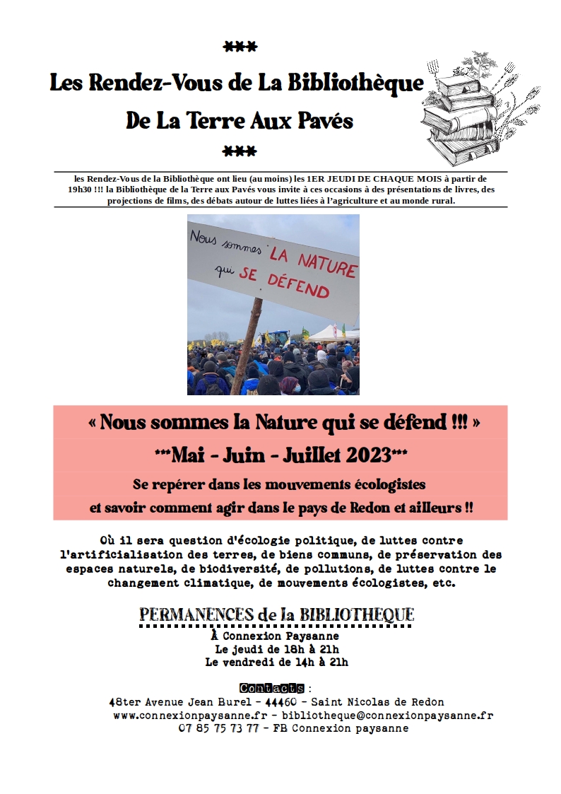 [Les Rendez-vous de la Bibliothèque de la Terre aux Pavés] Cycle "Nous sommes la Nature qui se défend !!" Programme de Mai 2023