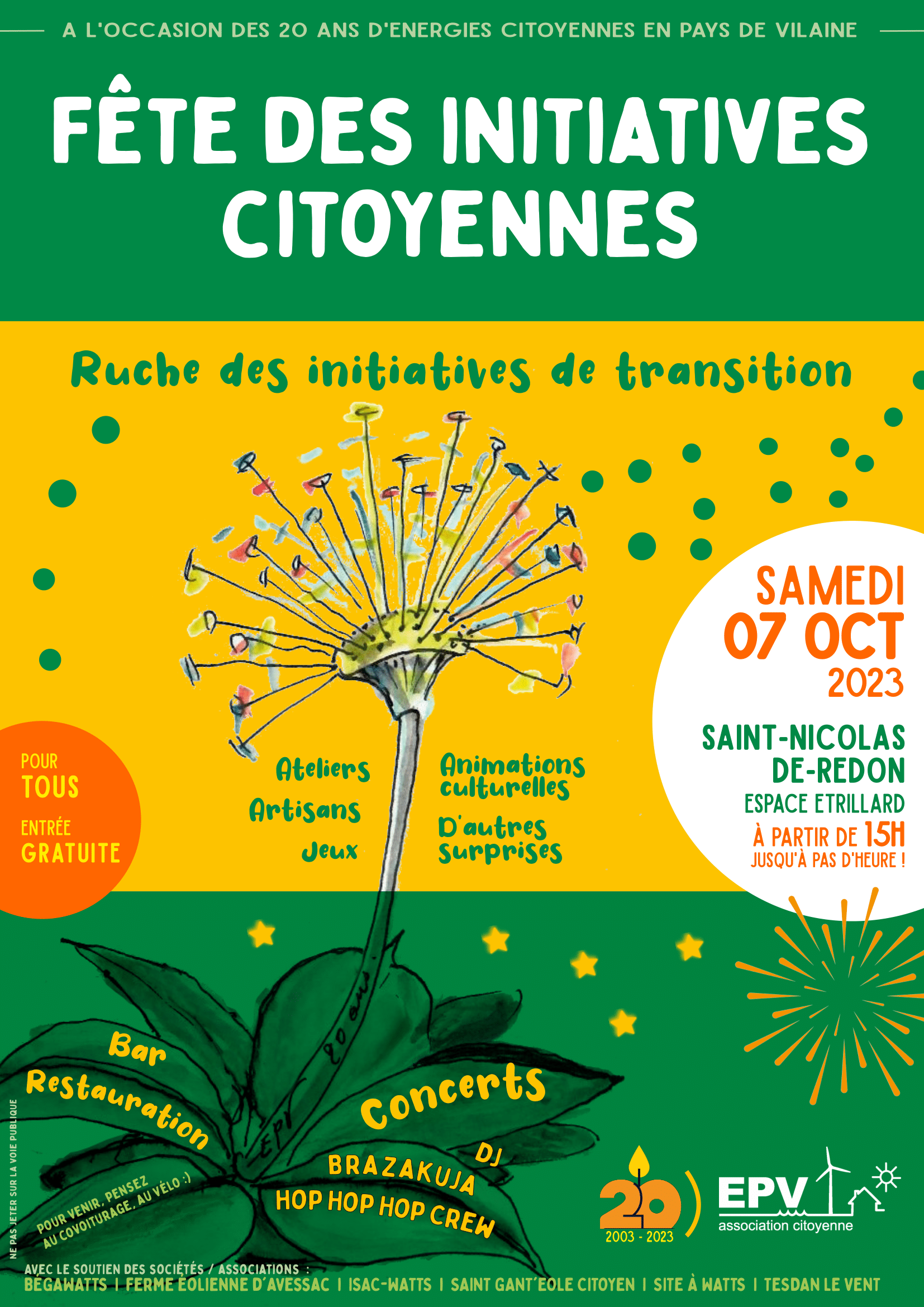 [Energie citoyenne en Pays de Vilaine] Fête des initaitives citoyennes pour leur 20ans, 7 octobre à St Nicolas de Redon