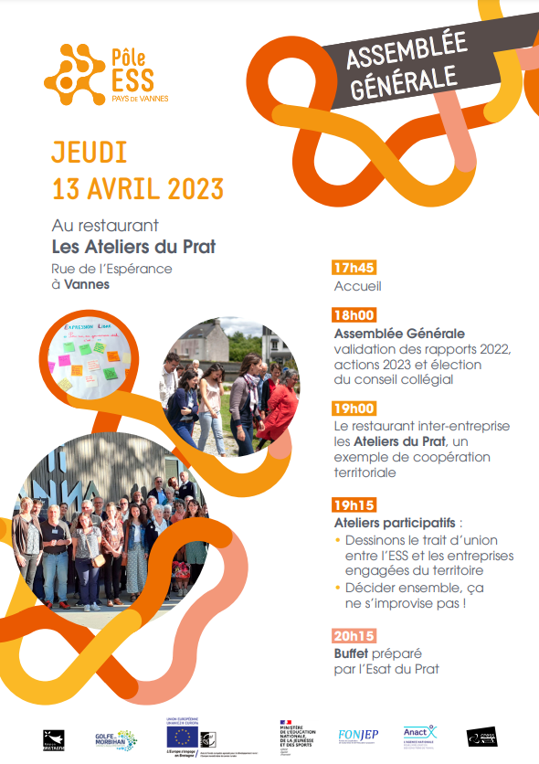 Accueil > Les nouvelles du coin > [Pôle E2S Pays Vannes] Invitation AG Jeudi 13 avril- Les Ateliers du Prat-AG E2S