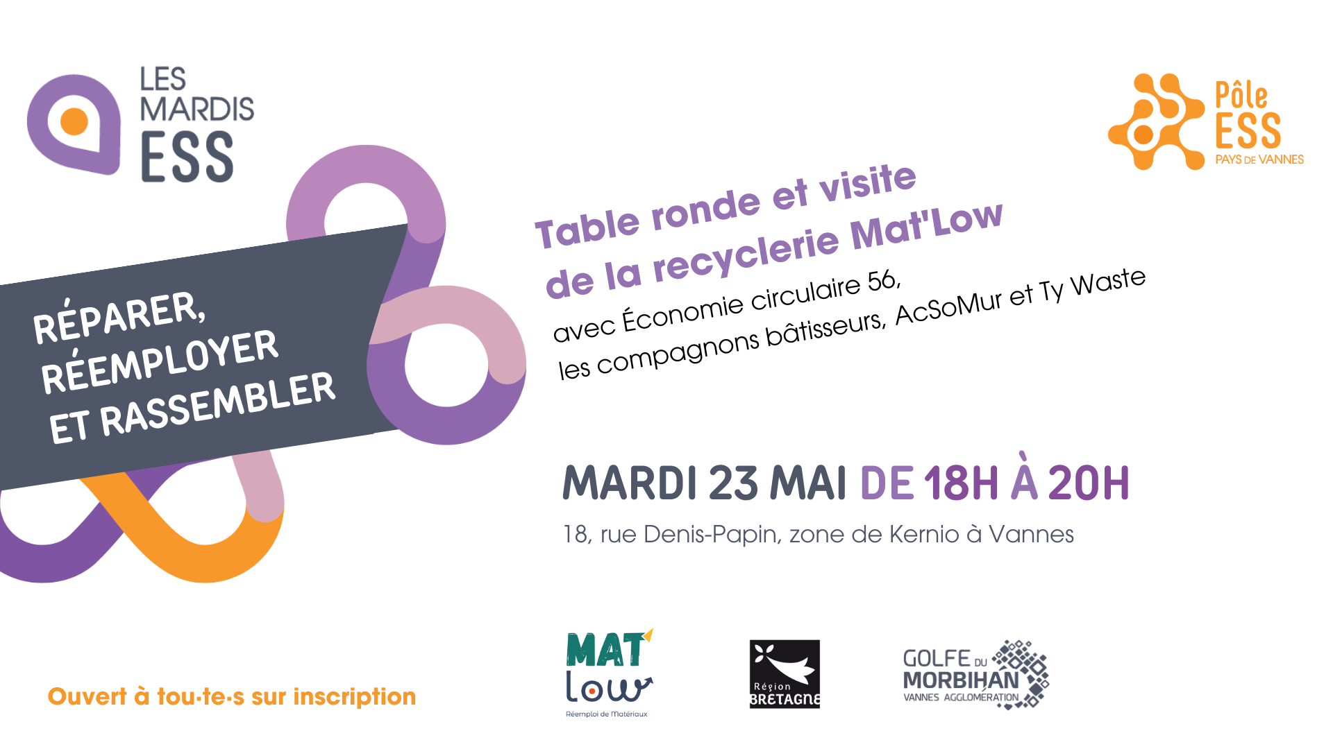 Le pôle ESS du Pays de Vannes et la recyclerie Mat’Low vous proposent un MARDI ESS sur la thématique "Réparer, réemployer et rassembler" :