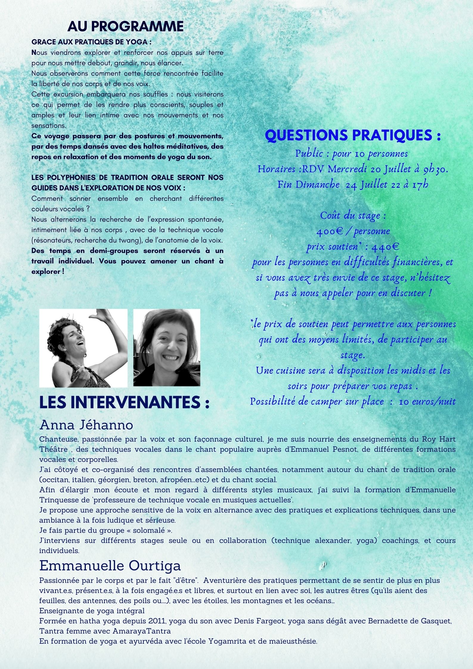 Accueil > Les nouvelles du coin > Stage de chant et yoga du 20 au 24 juillet