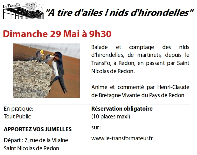 [Transformateur] Animation "A tire d’ailes ! Nids d’hirondelles —> Dim. 29 Mai